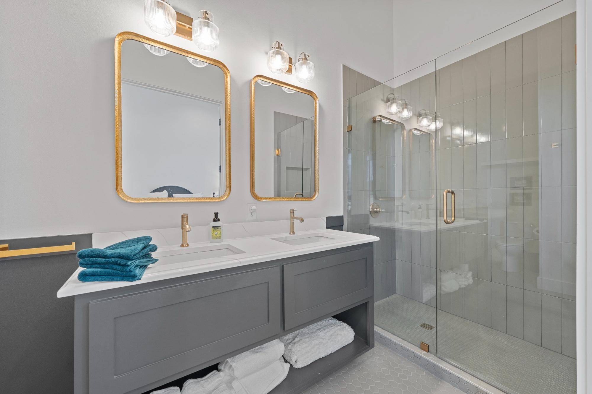 Each bedroom has a private en suite bath.The 4th bedroom is an isolated suite with its own private entry via the covered back porch. This suite is ideal for guests looking to hit the hay a little earlier than the rest or the couple that would enjoy sleeping in later than the rest of the group.